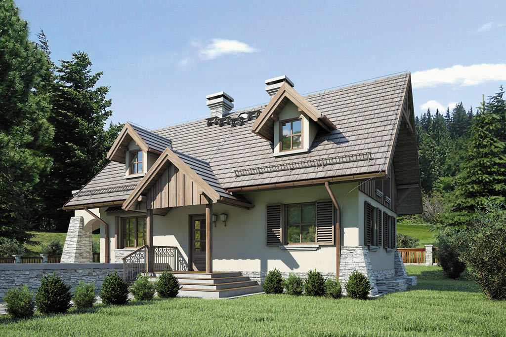 Dom jednorodzinny, parterowy z poddaszem użytkowym, podpiwniczony